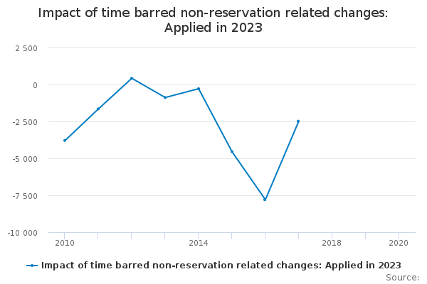 Download this time seriesImpact of time barred non-reservation related changes: Applied in 2023