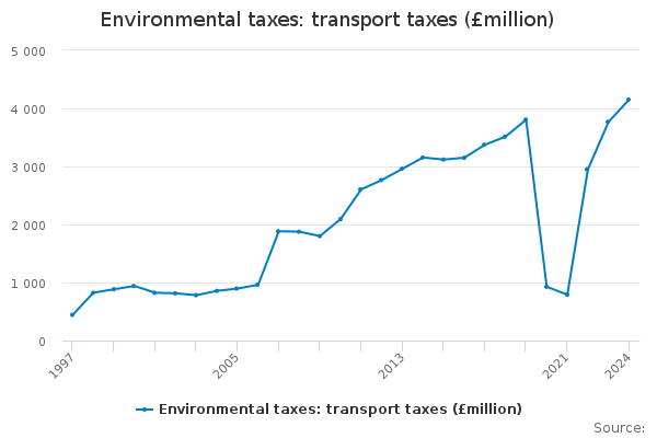 Download this time seriesEnvironmental taxes: transport taxes (£million)