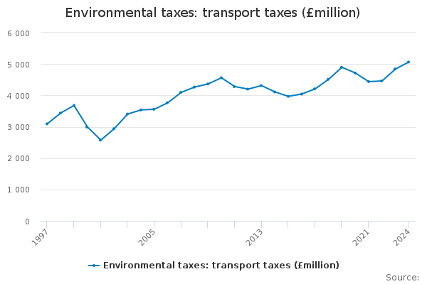 Download this time seriesEnvironmental taxes: transport taxes (£million)
