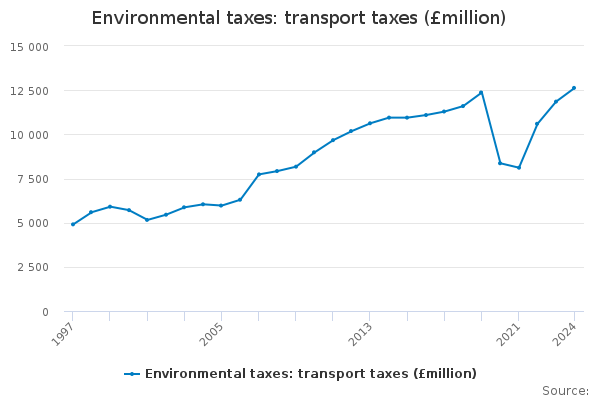 Download this time seriesEnvironmental taxes: transport taxes (£million)