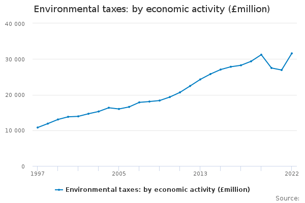Download this time seriesEnvironmental taxes: by economic activity (£million)
