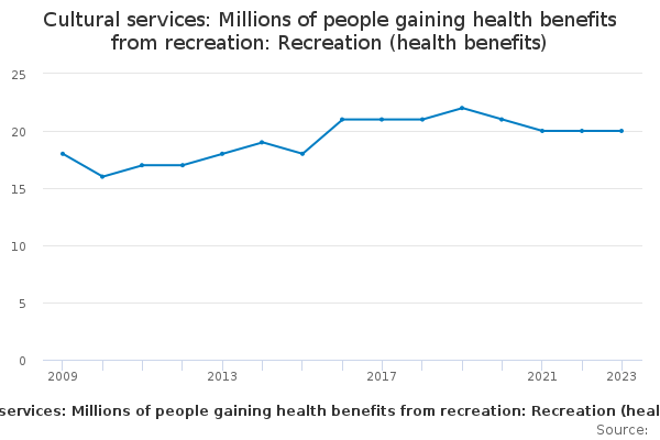 Download this time seriesCultural services: Millions of people gaining health benefits from recreation: Recreation (health benefits)