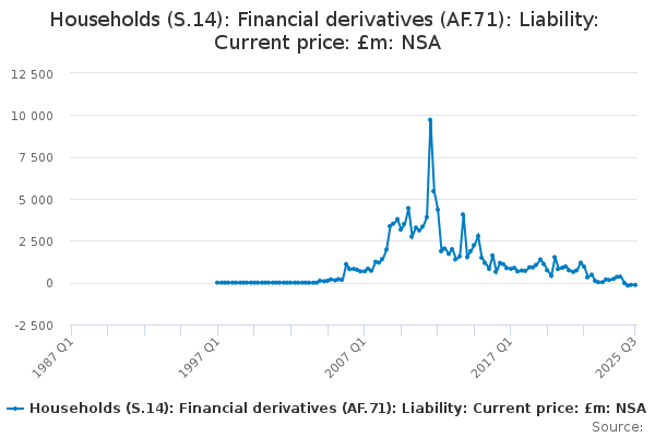 Download this time seriesHouseholds (S.14): Financial derivatives (AF.71): Liability: Current price: £m: NSA