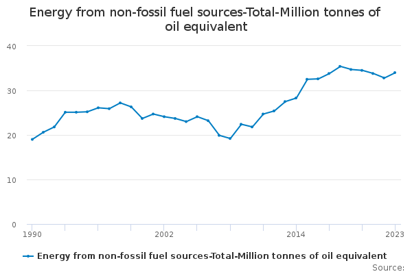 Download this time seriesEnergy from non-fossil fuel sources-Total-Million tonnes of oil equivalent