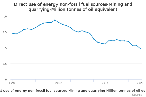 Download this time seriesDirect use of energy non-fossil fuel sources-Mining and quarrying-Million tonnes of oil equivalent