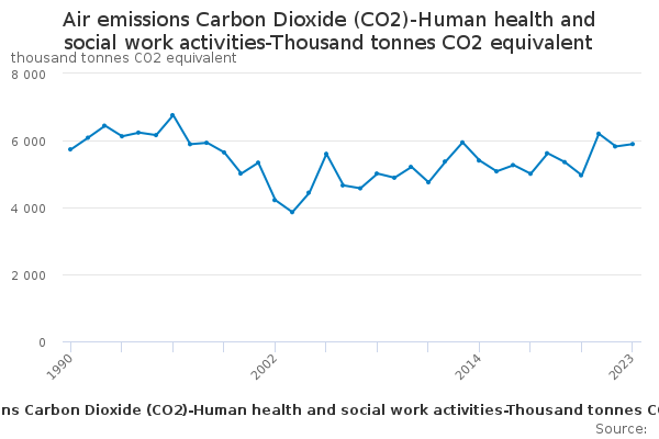 Download this time seriesAir emissions Carbon Dioxide (CO2)-Human health and social work activities-Thousand tonnes CO2 equivalent