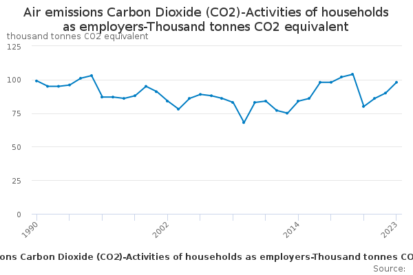 Download this time seriesAir emissions Carbon Dioxide (CO2)-Activities of households as employers-Thousand tonnes CO2 equivalent