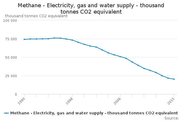 Download this time seriesMethane - Electricity, gas and water supply - thousand tonnes CO2 equivalent