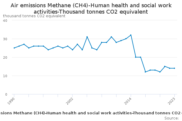 Download this time seriesAir emissions Methane (CH4)-Human health and social work activities-Thousand tonnes CO2 equivalent