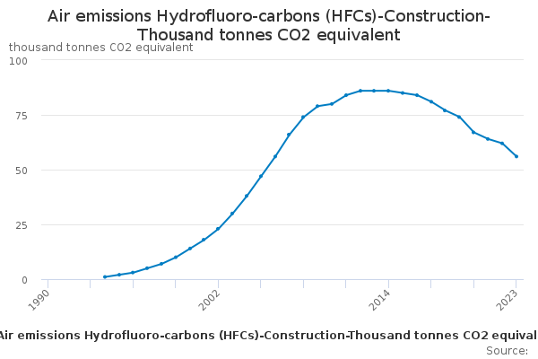 Download this time seriesAir emissions Hydrofluoro-carbons (HFCs)-Construction-Thousand tonnes CO2 equivalent