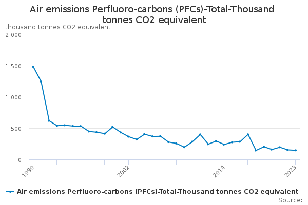 Download this time seriesAir emissions Perfluoro-carbons (PFCs)-Total-Thousand tonnes CO2 equivalent