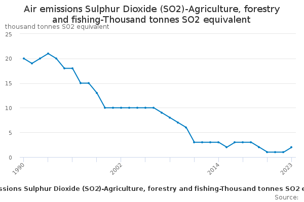 Download this time seriesAir emissions Sulphur Dioxide (SO2)-Agriculture, forestry and fishing-Thousand tonnes SO2 equivalent