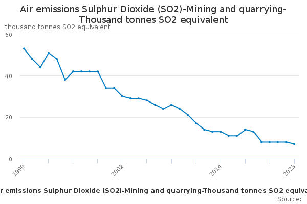 Download this time seriesAir emissions Sulphur Dioxide (SO2)-Mining and quarrying-Thousand tonnes SO2 equivalent