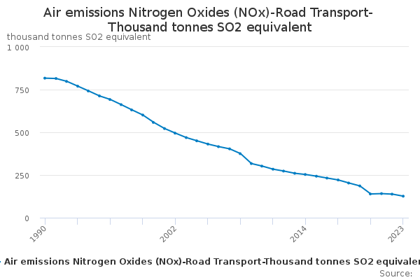 Download this time seriesAir emissions Nitrogen Oxides (NOx)-Road Transport-Thousand tonnes SO2 equivalent