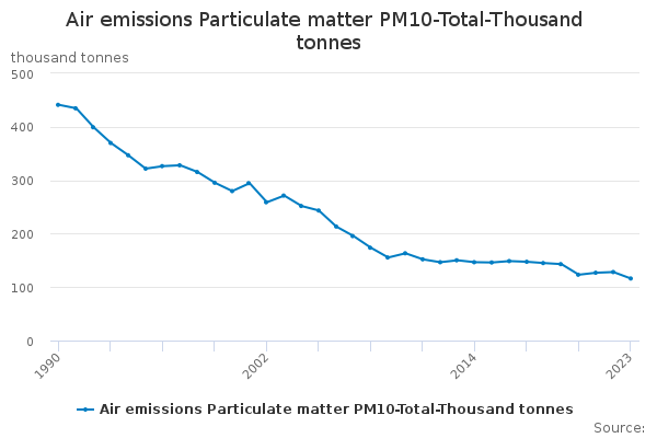 Download this time seriesAir emissions Particulate matter PM10-Total-Thousand tonnes