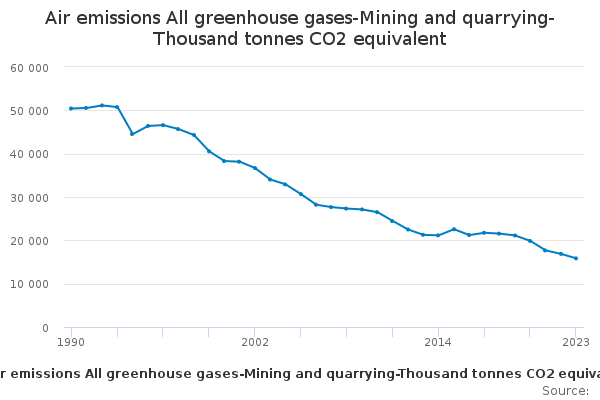 Download this time seriesAir emissions All greenhouse gases-Mining and quarrying-Thousand tonnes CO2 equivalent