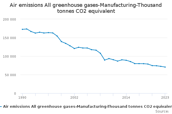 Download this time seriesAir emissions All greenhouse gases-Manufacturing-Thousand tonnes CO2 equivalent