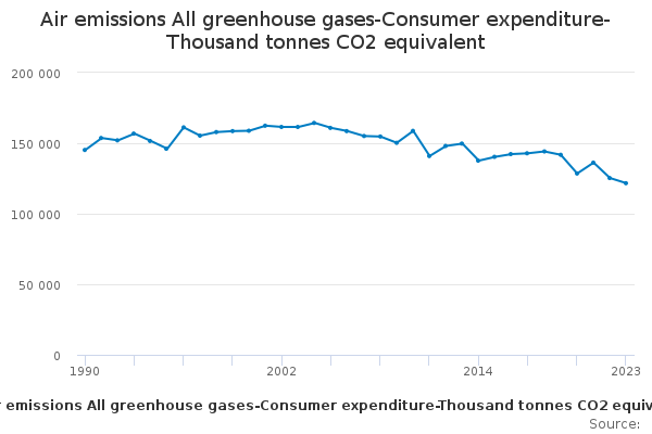 Download this time seriesAir emissions All greenhouse gases-Consumer expenditure-Thousand tonnes CO2 equivalent