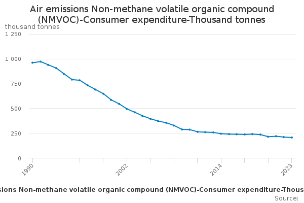 Download this time seriesAir emissions Non-methane volatile organic compound (NMVOC)-Consumer expenditure-Thousand tonnes