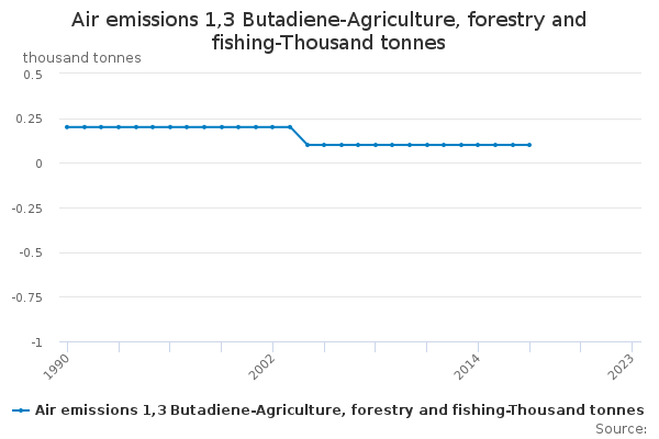 Download this time seriesAir emissions 1,3 Butadiene-Agriculture, forestry and fishing-Thousand tonnes