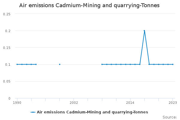 Download this time seriesAir emissions Cadmium-Mining and quarrying-Tonnes