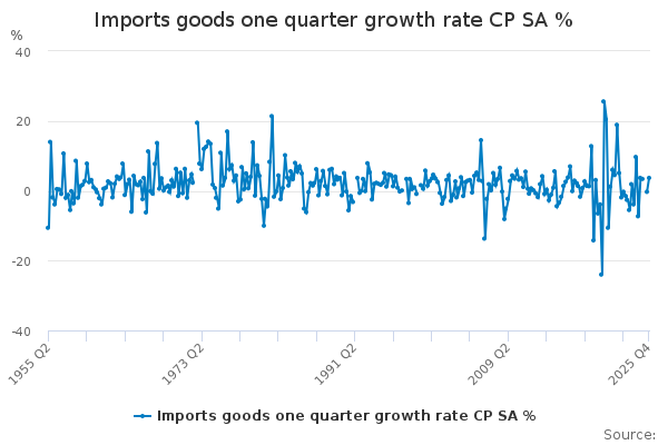 Download this time seriesImports goods one quarter growth rate CP SA %