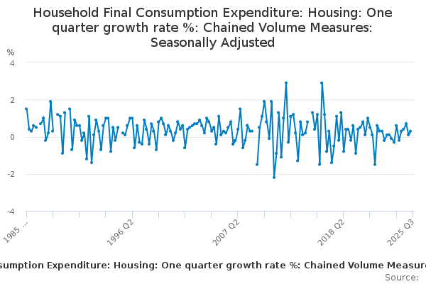 Download this time seriesHousehold Final Consumption Expenditure: Housing: One quarter growth rate %: Chained Volume Measures: Seasonally Adjusted