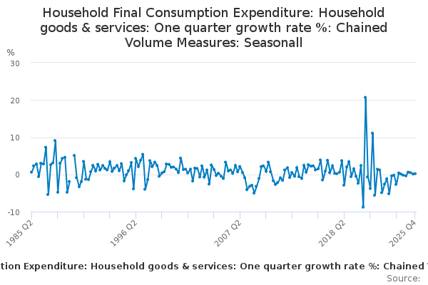 Download this time seriesHousehold Final Consumption Expenditure: Household goods & services: One quarter growth rate %: Chained Volume Measures: Seasonall