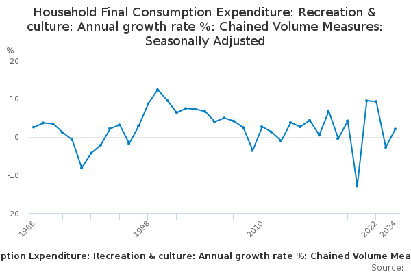 Download this time seriesHousehold Final Consumption Expenditure: Recreation & culture: Annual growth rate %: Chained Volume Measures: Seasonally Adjusted