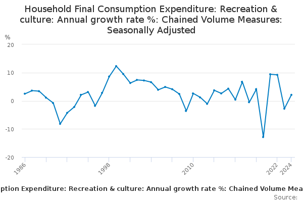 Download this time seriesHousehold Final Consumption Expenditure: Recreation & culture: Annual growth rate %: Chained Volume Measures: Seasonally Adjusted
