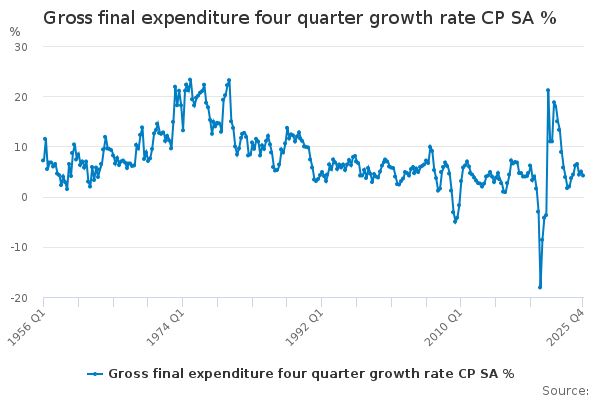 Download this time seriesGross final expenditure four quarter growth rate CP SA %