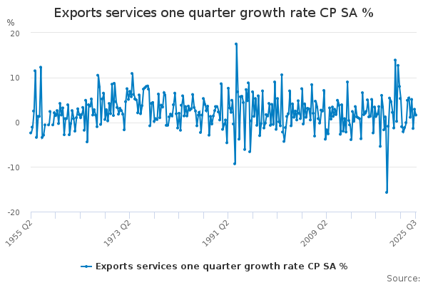 Download this time seriesExports services one quarter growth rate CP SA %