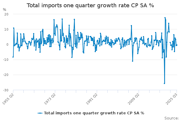 Download this time seriesTotal imports one quarter growth rate CP SA %