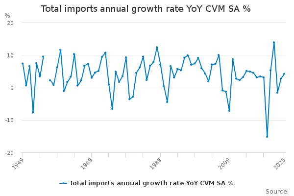 Download this time seriesTotal imports annual growth rate YoY CVM SA %