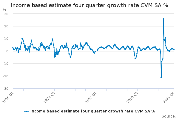 Download this time seriesIncome based estimate four quarter growth rate CVM SA %