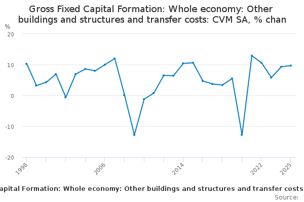 Download this time seriesGross Fixed Capital Formation: Whole economy: Other buildings and structures and transfer costs: CVM SA, % chan