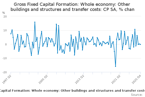 Download this time seriesGross Fixed Capital Formation: Whole economy: Other buildings and structures and transfer costs: CP SA, % chan