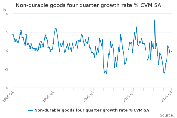Download this time seriesNon-durable goods four quarter growth rate % CVM SA