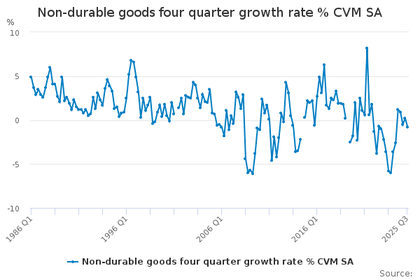 Download this time seriesNon-durable goods four quarter growth rate % CVM SA
