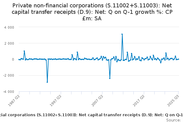 Download this time seriesPrivate non-financial corporations (S.11002+S.11003): Net capital transfer receipts (D.9): Net: Q on Q-1 growth %: CP £m: SA