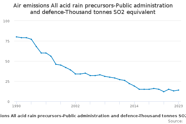 Download this time seriesAir emissions All acid rain precursors-Public administration and defence-Thousand tonnes SO2 equivalent