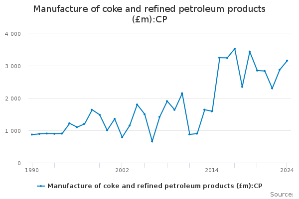 Download this time seriesManufacture of coke and refined petroleum products (£m):CP