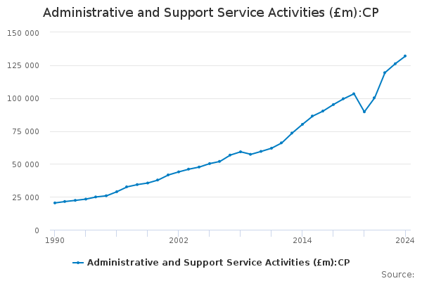 Download this time seriesAdministrative and Support Service Activities (£m):CP