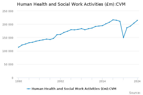Download this time seriesHuman Health and Social Work Activities (£m):CVM