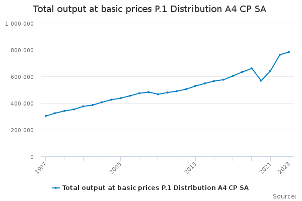 Download this time seriesTotal output at basic prices P.1 Distribution A4 CP SA