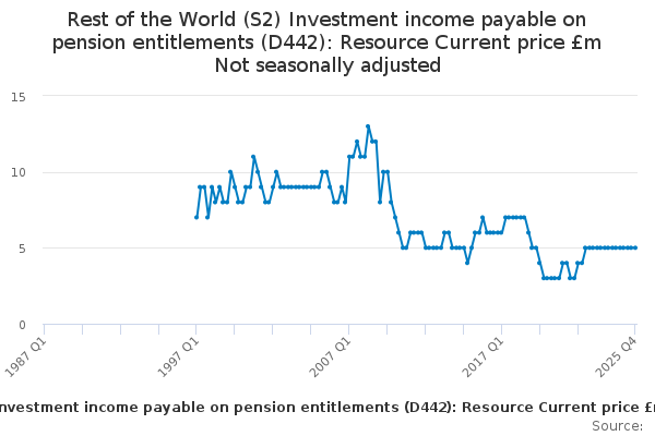 Download this time seriesRest of the World (S2) Investment income payable on pension entitlements (D442): Resource Current price £m Not seasonally adjusted