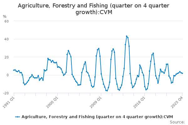 Download this time seriesAgriculture, Forestry and Fishing (quarter on 4 quarter growth):CVM