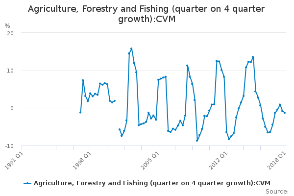 Download this time seriesAgriculture, Forestry and Fishing (quarter on 4 quarter growth):CVM