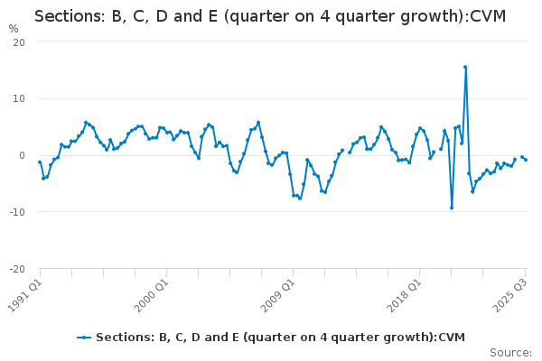 Download this time seriesSections: B, C, D and E (quarter on 4 quarter growth):CVM