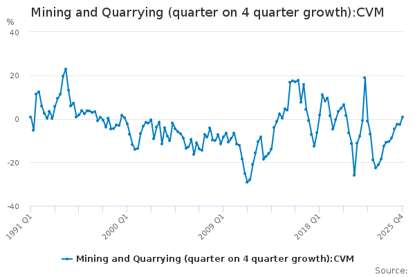 Download this time seriesMining and Quarrying (quarter on 4 quarter growth):CVM